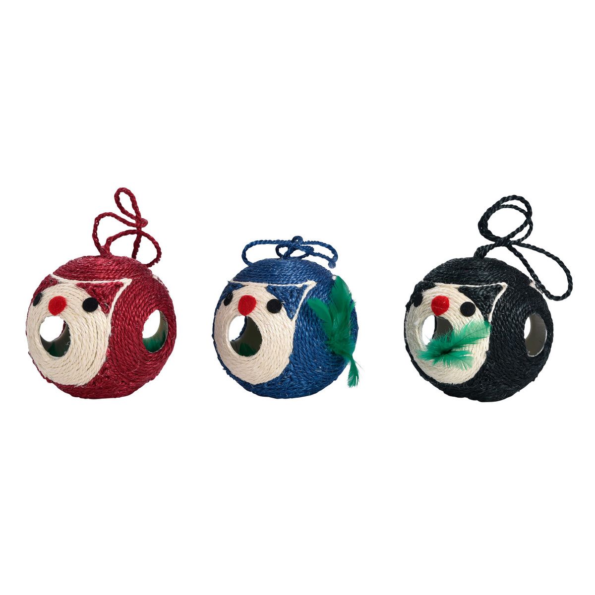 OURS - Balle en sisal avec boule à plumes à l'intérieur. Ce jouet ludique allie l'utile à l'agréable : il permet au chat de s'amuser tout en faisant ses griffes. Son petit format pratique vous permettra de l'emporter partout, et même de le suspendre à la poignée de la porte.
